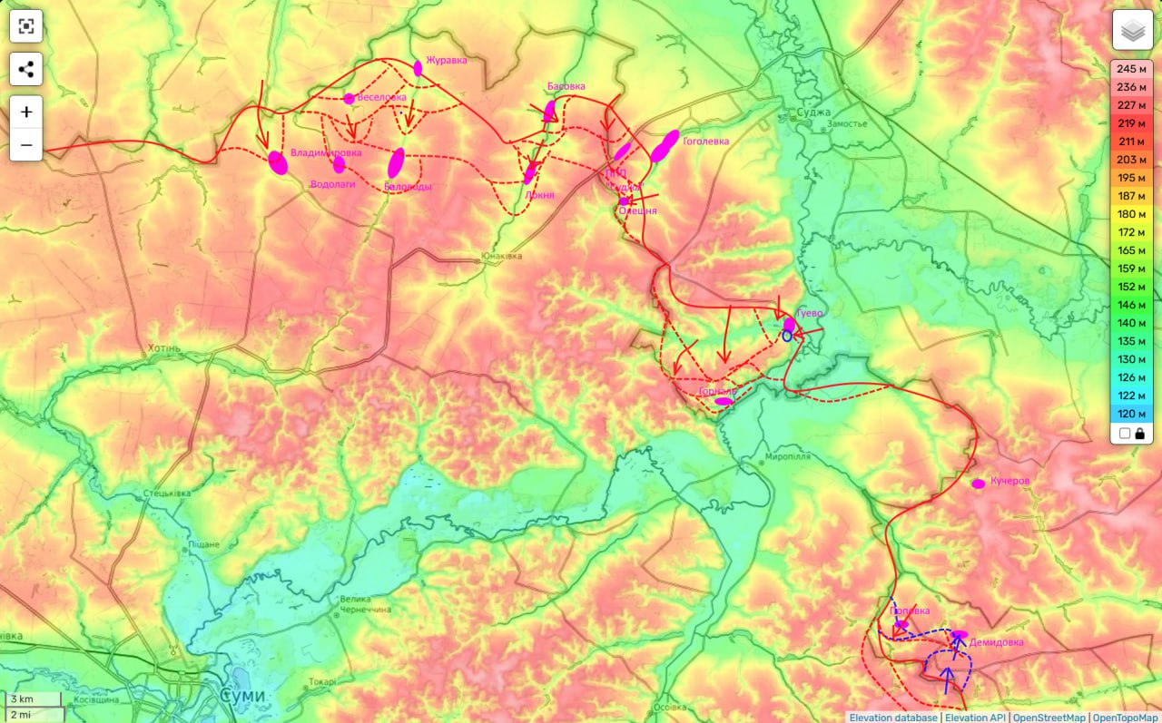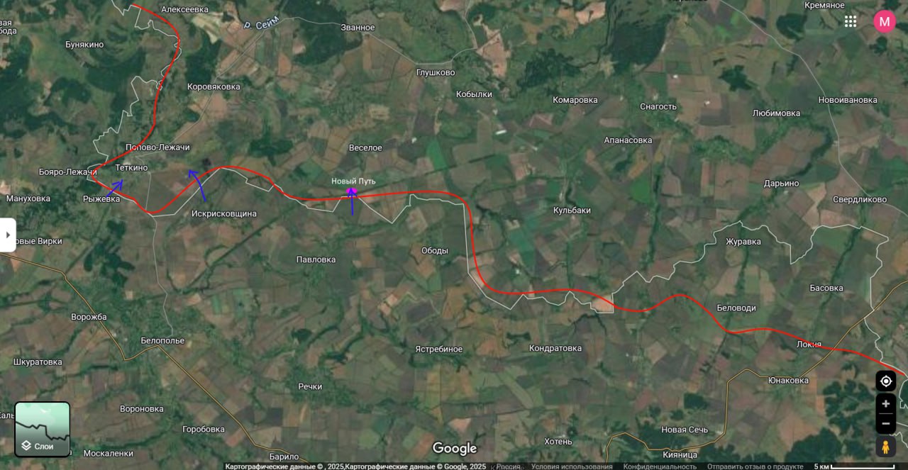 Между тем, южная часть Локни плавно переходит в село Юнаковка г главную промежуточную цель нашего здесь наступления. Контроль над высотами вокруг Юнаковки позволит нам работать FPV-дронами по Сумам.