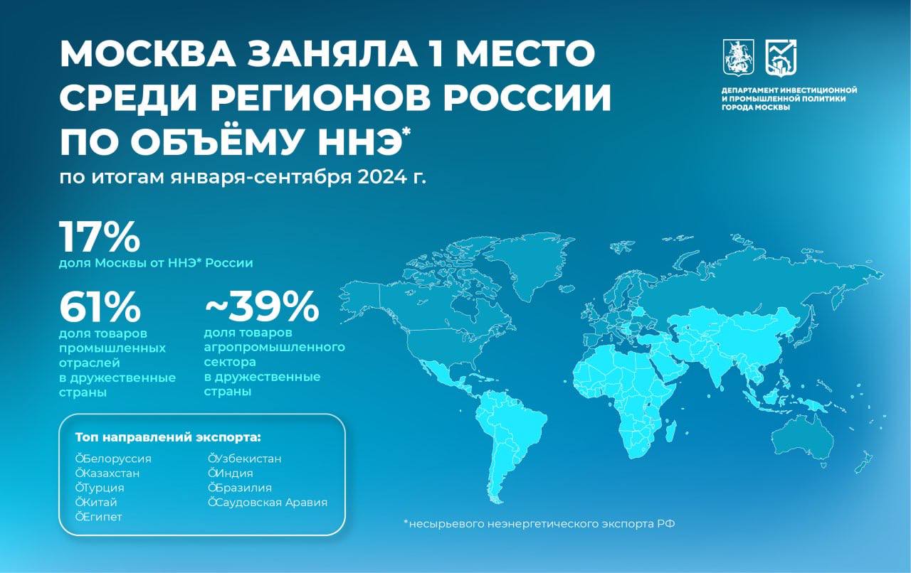 📊 Москва — лидер среди регионов по объему несырьевого неэнергетического экспорта.