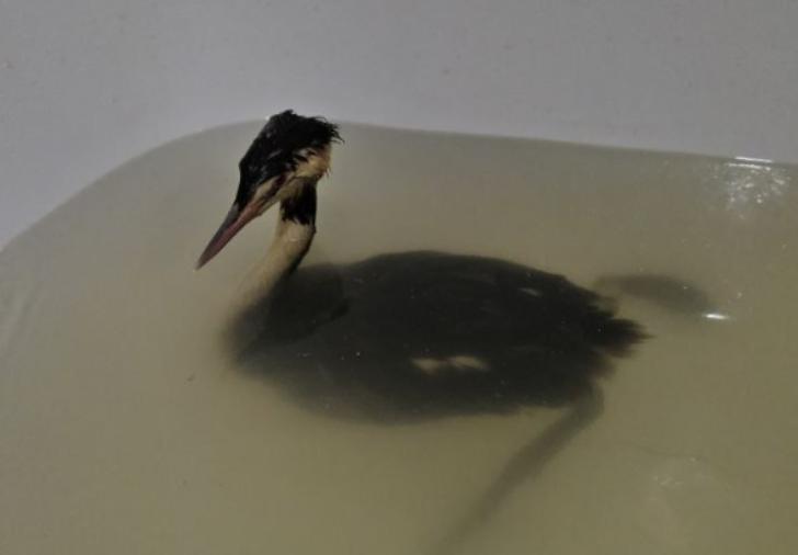 – 20 минут в ванной – полностью погрузилась в воду чомга. Оперение воду не отталкивает. На суше птица быстро замерзнет. 30 минут в ванной – промокло оперение у черношейной поганки. Вывод: за месячный срок после помывки Фэйри оперение поганок не восстанавливает своих функций, не сохраняет тепло и не отталкивает воду, – делает печальное заключение местный эколог Роман Пукалов.