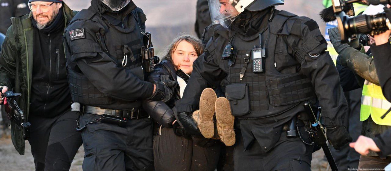 Также отмечается, что из-за запланированного визита Тунберг пришлось разогнать лагерь протестующих в Дортмунде: силовики предполагали, что её появление увеличит количество участников.