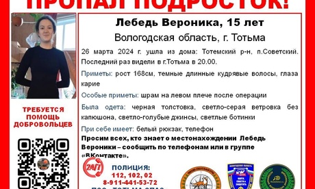 Накануне 15-летняя Вероника Лебедь ушла из дома (поселок Советский).