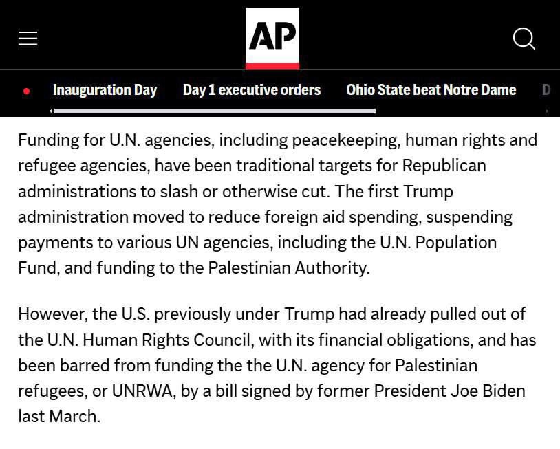 ⚡️Подписанный Трампом указ о прекращении международной помощи на 90 дней не касается военной помощи Украине, — Associated Press