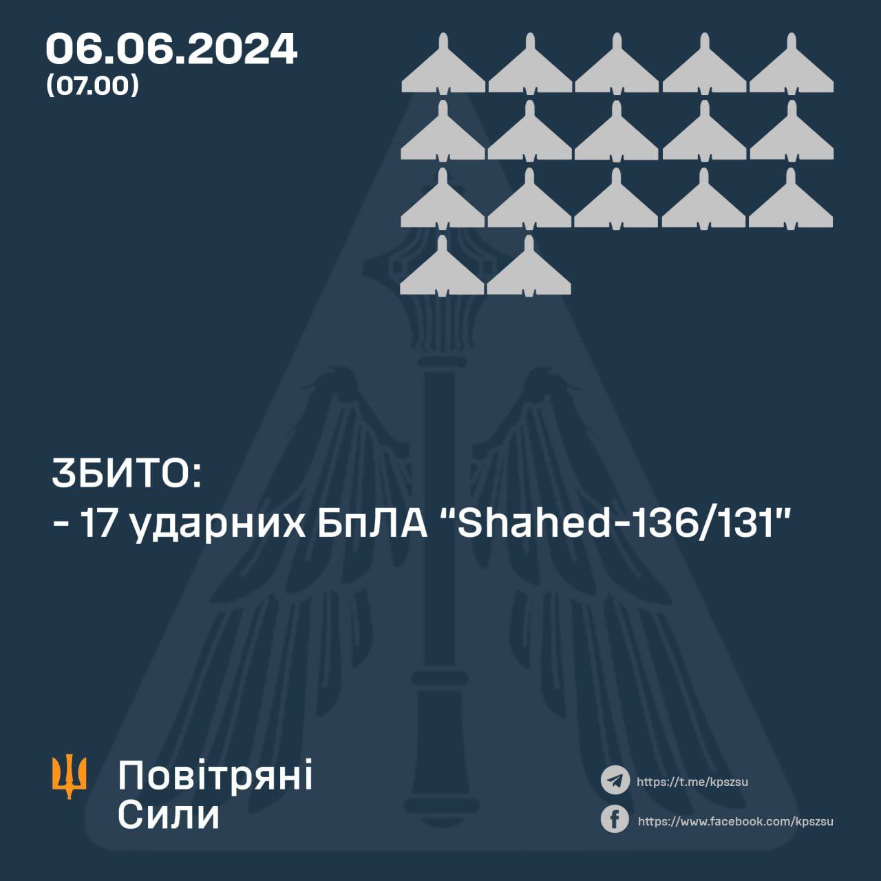 17 из 18 БПЛА уничтожили этой ночью силы ПВО в Николаевской, Херсонской, Запорожской и Хмельницкой областях, — Воздушные силы