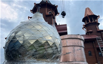 На строительную площадку красноярского храма в честь праведных Иоакима и Анны накануне вечером доставили центральный купол, барабан и крест.
