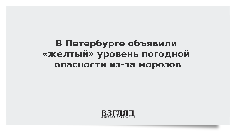 В Петербурге объявлен «желтый» уровень погодной опасности из-за сильных морозов, передает РИА «Новости». Как уточняет пресс-служба администрации губернатора, по информации Росгидрометцентра, предупреждение действует с полуночи до 10 утра 26 января.