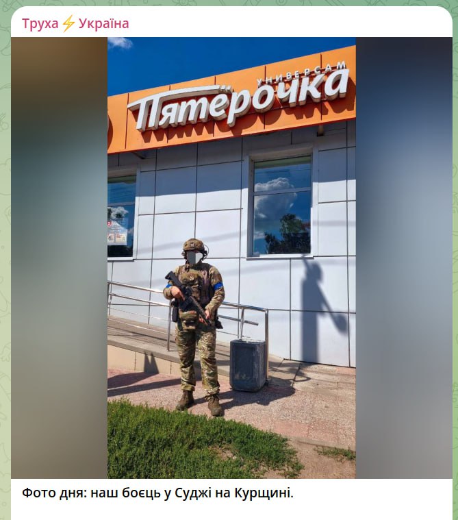 Если кто не понял, это фото солдата ВСУ в Судже (Заолешенка) возле магазина "Пятерочка". Геолокацию, которого вы видите на втором скрине.