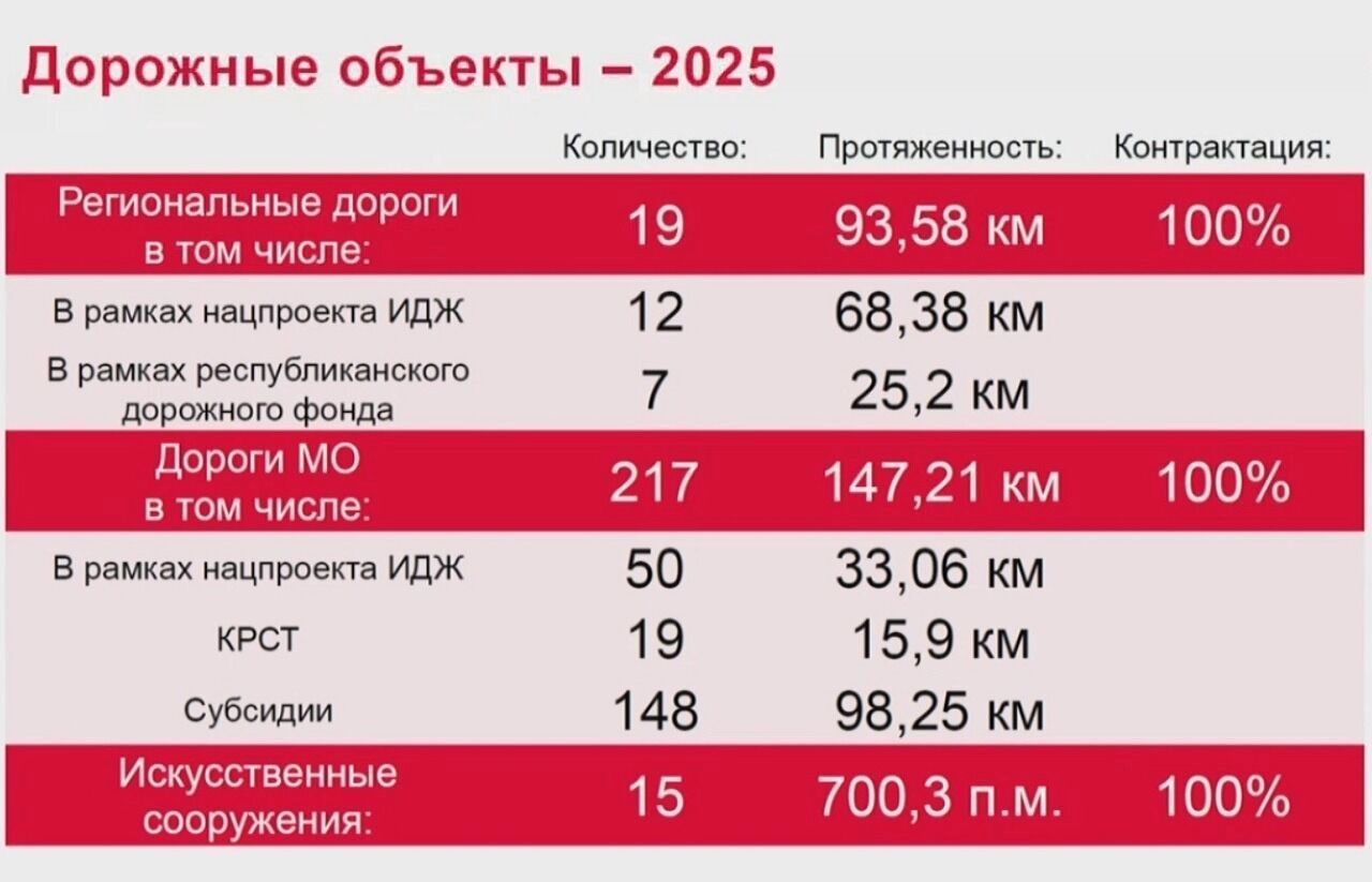 Всего в 2025 году запланированы работы на 19 участках региональных дорог общей протяженностью 93,58 км. Муниципальных дорог обновят 147,21 километра на 217 участках. Кроме того, возведут 15 искусственных сооружений.