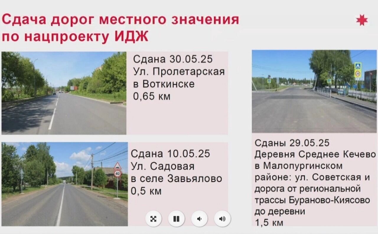 «На прошлой неделе у нас были сданы объекты по улице Пролетарской в Воткинске, улица Садовая села Завьялова и объект в деревне Среднее Кечево Малопургинского района», — отметил министр.