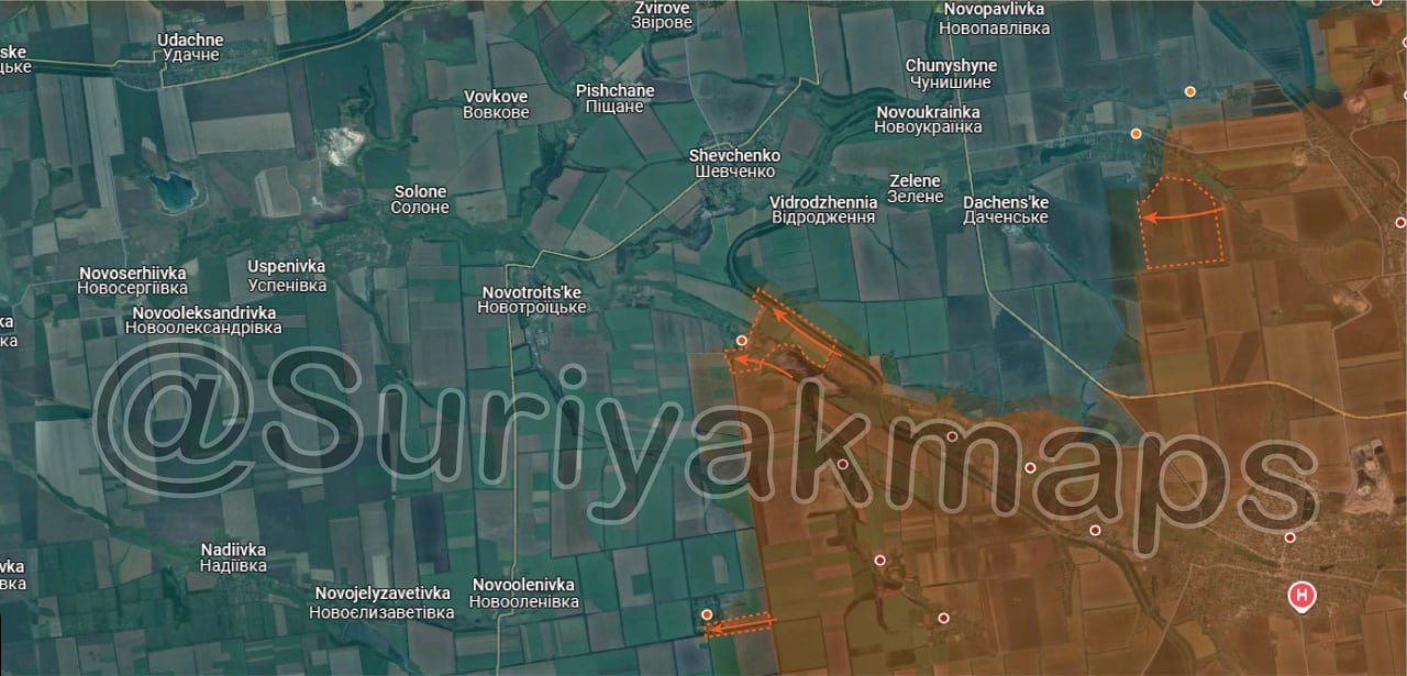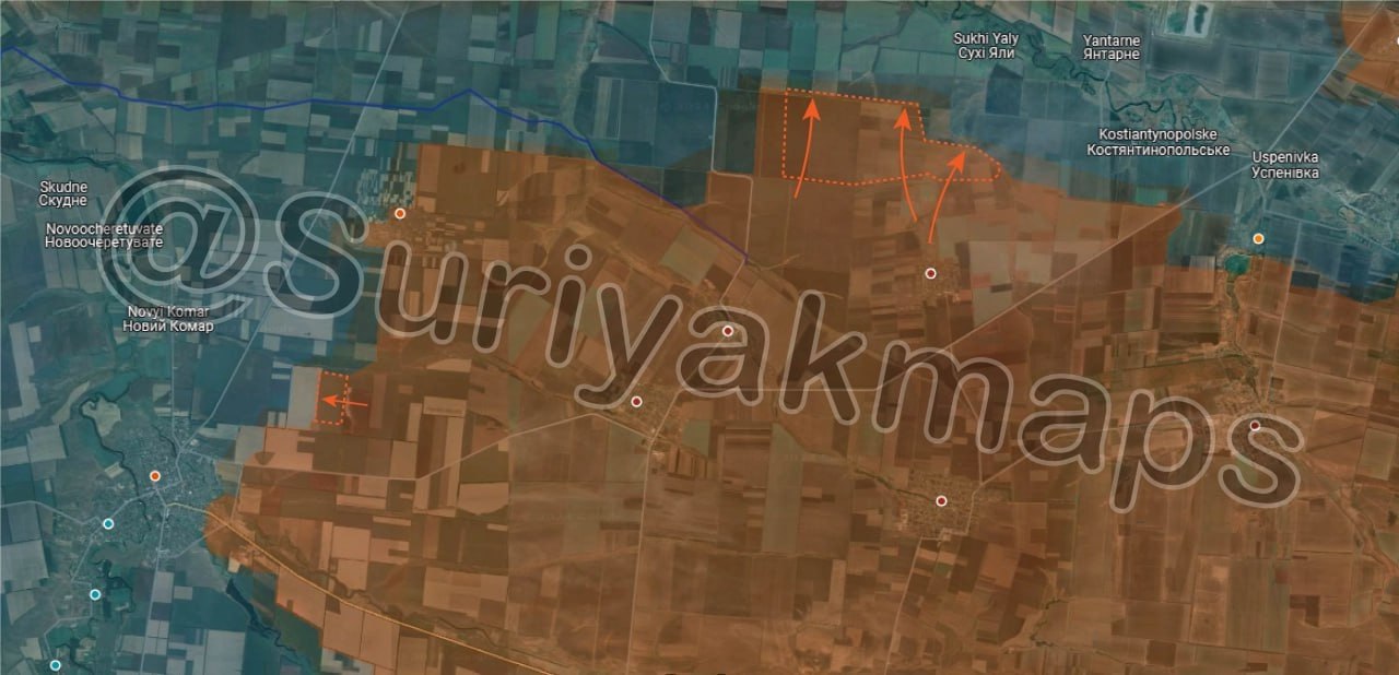 Ситуация в районе Великой Новоселки: российские войска продвинулись на север от Максимовки в сторону н. п. Сухие Ялы.