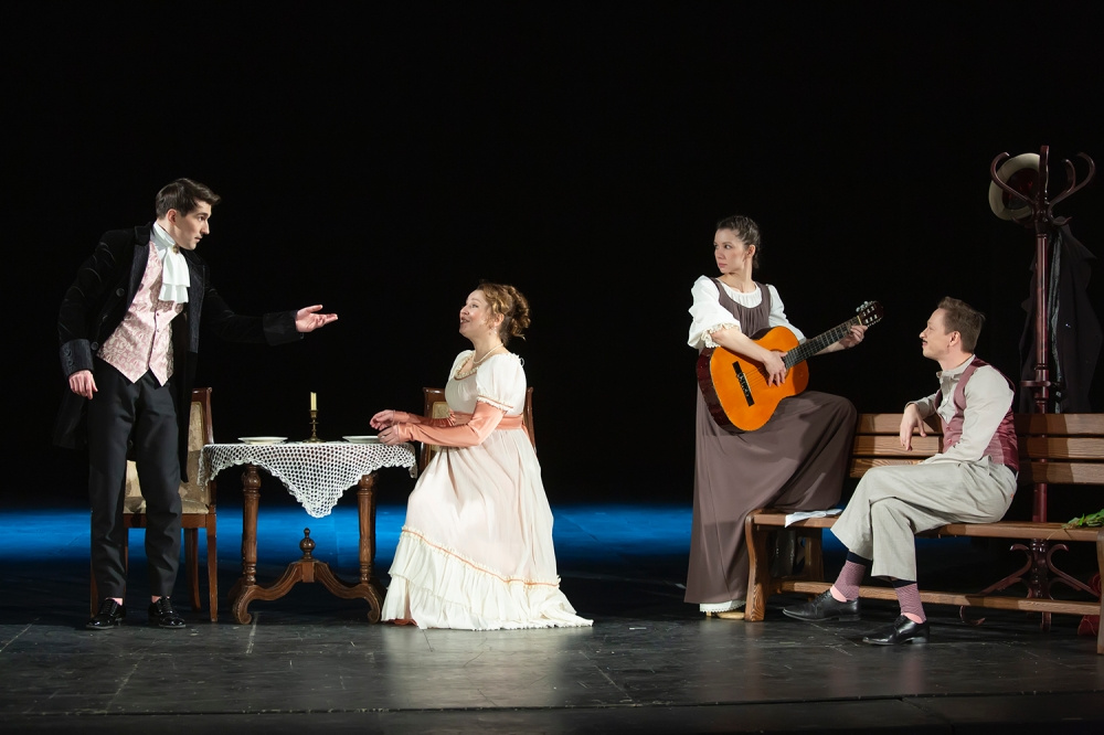 Во второй части зрители увидят спектакль по поэме «Граф Нулин», который напоминает по своей структуре ловко рассказанный анекдот. В этой части ирония и остроумие сочетаются с вокальными актерскими выступлениями, включающими старинные русские песни, романсы XIX века и даже фрагменты популярной оперетты.