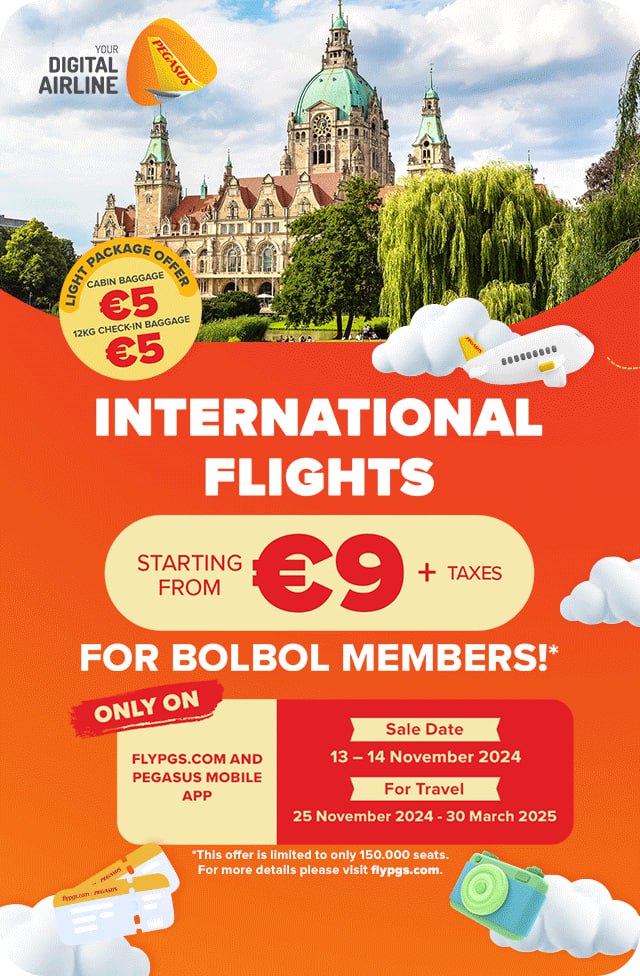 🇹🇷❗️ У Pegasus Airlines распродажа — билеты на международные рейсы от €9 + сборы