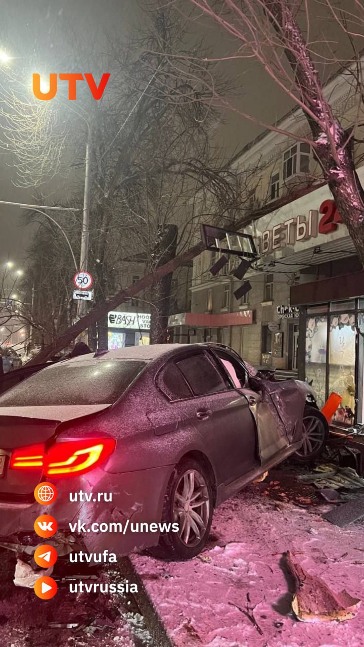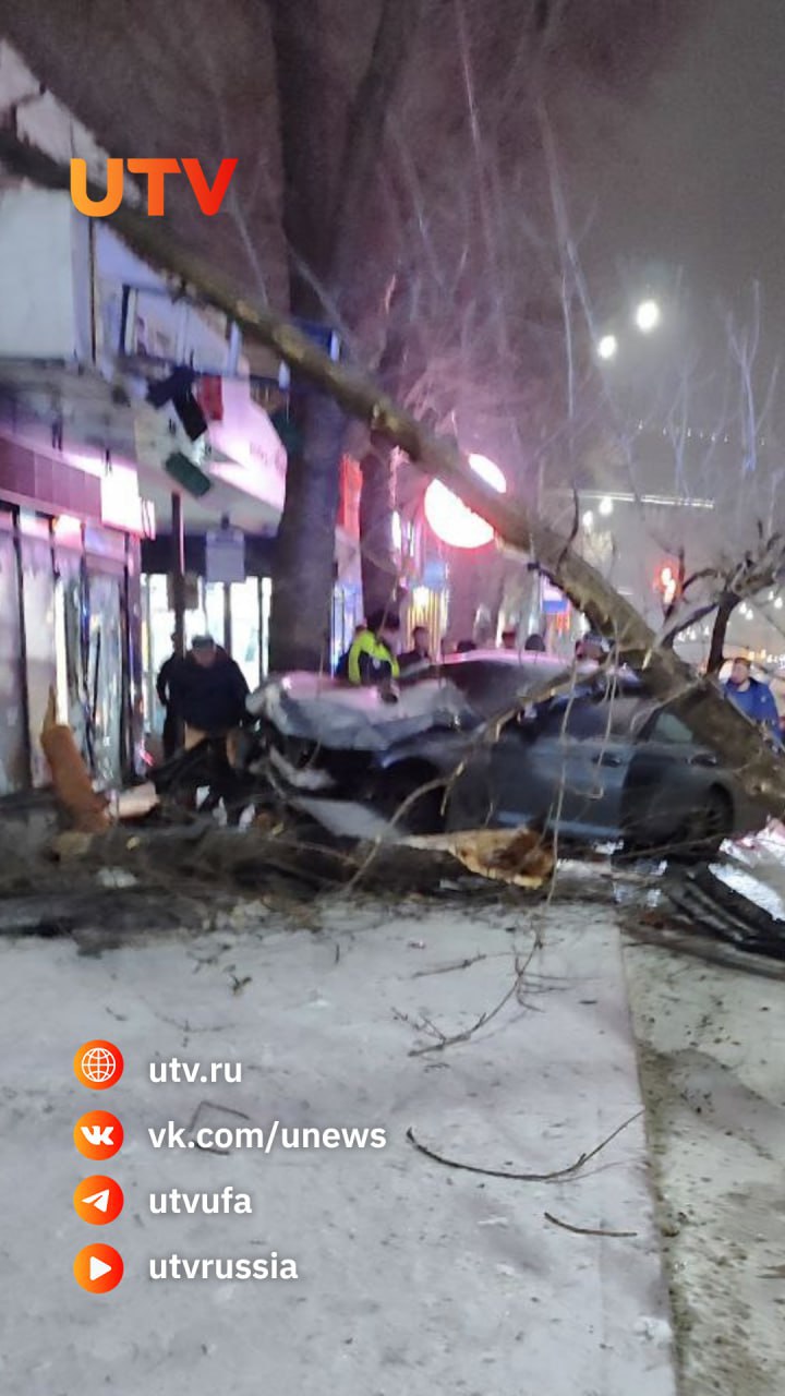Ночью в Уфе водитель BMW влетел в дерево возле остановки «Фирма Мир»