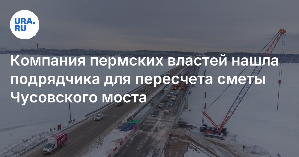 «Новый генподрядчик по достройке моста через Чусовую провел закупку по перерасчету раздела „Смета на строительство“ проектной документации на строительство объекта. Закупка проведена 20 декабря у единственного поставщика, он не раскрывается», — пишет «Коммерсант Прикамье» со ссылкой на сайт закупок.