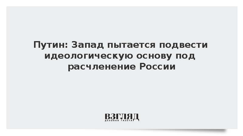 «Сегодня они (западные элиты) говорят о пресловутой «деколонизации» России, – сказал президент. – По сути, это попытка подвести идеологическую основу под расчленение нашего Отечества по национальному признаку. Ну, собственно, о расчленении Советского Союза, России говорится давно. Все сидящие в этом зале хорошо об этом знают». «Реализуя эту стратегию, западные страны взяли линию на поглощение и военно-политическое освоение близких к нам территорий», – передает ТАСС слова Путина