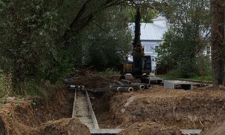 Проведены очистка площадок и устройство котлована под резервуары чистой воды.