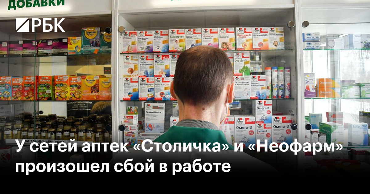 В сети аптек «Столички» не работают некоторые точки продажи, также есть сбой в доступности отдельных функций сайта, говорится в уведомлении на ресурсе. Тоже самое говорится и на сайте аптек «Неофарм» (обе сети относятся к ООО «Нео-фарм»).