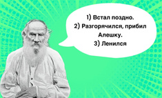 1) Встал поздно. 2) Разгорячился, прибил Алешку. 3) Ленился. 4) Был беспорядочен. 5) Был грустен.