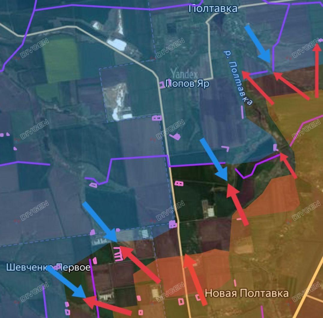 Идут ожесточённые встречные бои на рубеже Шевченко 1-е — Попов Яр — Полтавка — на подступах к Русин Яру.