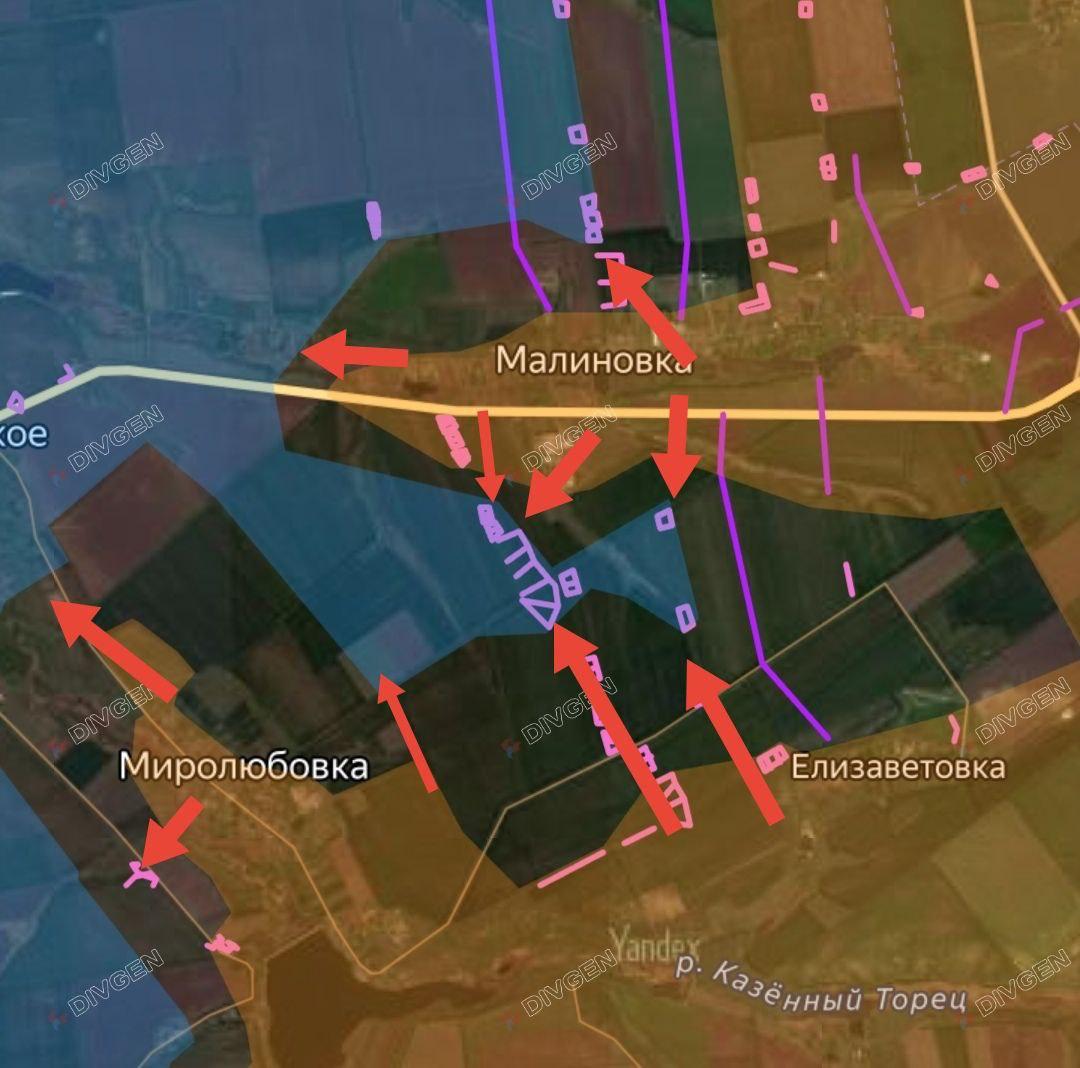 Наши подразделения зачистили от противника Елизаветовку и ведут бои по ликвидации "кармана" в районе Ульяновка (Малиновка) — Миролюбовка — Елизаветовка.