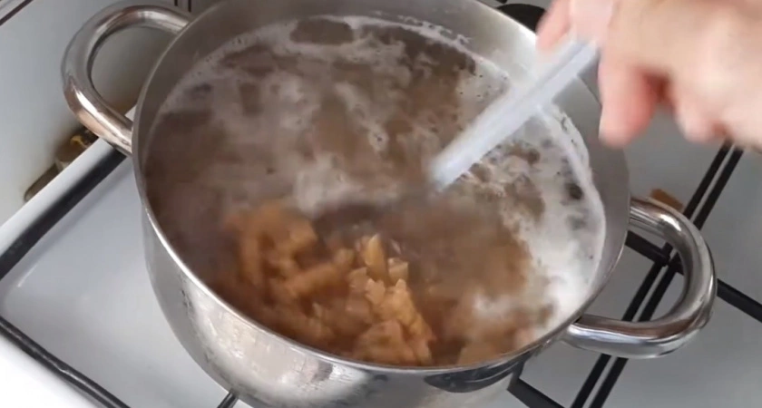 Важный момент: не стоит варить макароны в той воде, в которой они замачивались - ее надо слить.