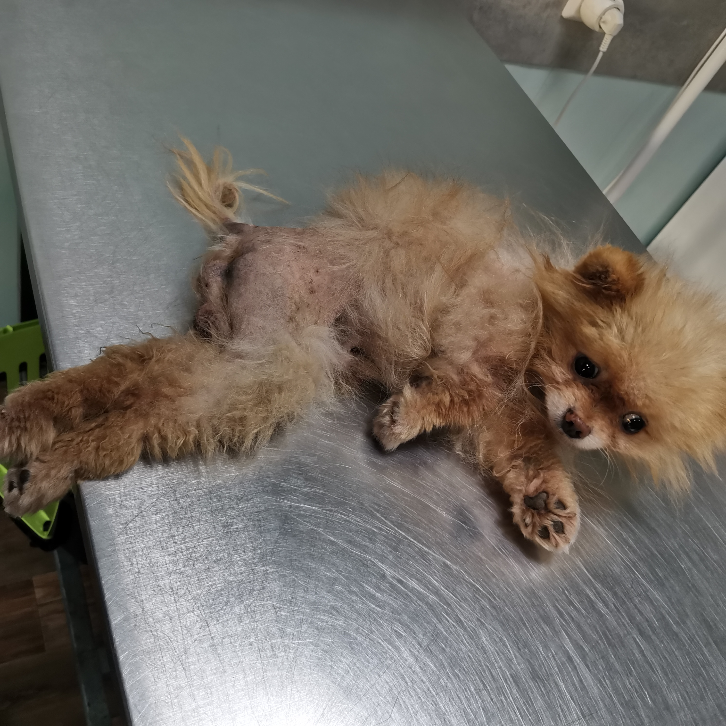 Сибирячка выкупила с передержки измученного шпица — фото собаки, которая лысеет и не ходит
