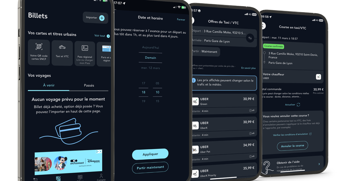 Après les hôtels, place aux VTC. Depuis début 2024, grâce à un partenariat avec ALL, les utilisateurs de SNCF Connect peuvent réserver une chambre dans un hôtel Accor en même temps que leur billet de train. Désormais, ils peuvent aussi réserver une course en VTC ou en taxi grâce à l’intégration des services d’Uber. Depuis l’onglet «Billets» de SNCF Connect, il suffit de cliquer sur l’offre «Taxi et VTC» pour réserver une course ou voir celles passées et à venir. Une fois la destination donnée, les utilisateurs sélectionnent l’option de leur choix (Berline, Taxi, Green, etc.) et paient directement auprès de SNCF Connect.