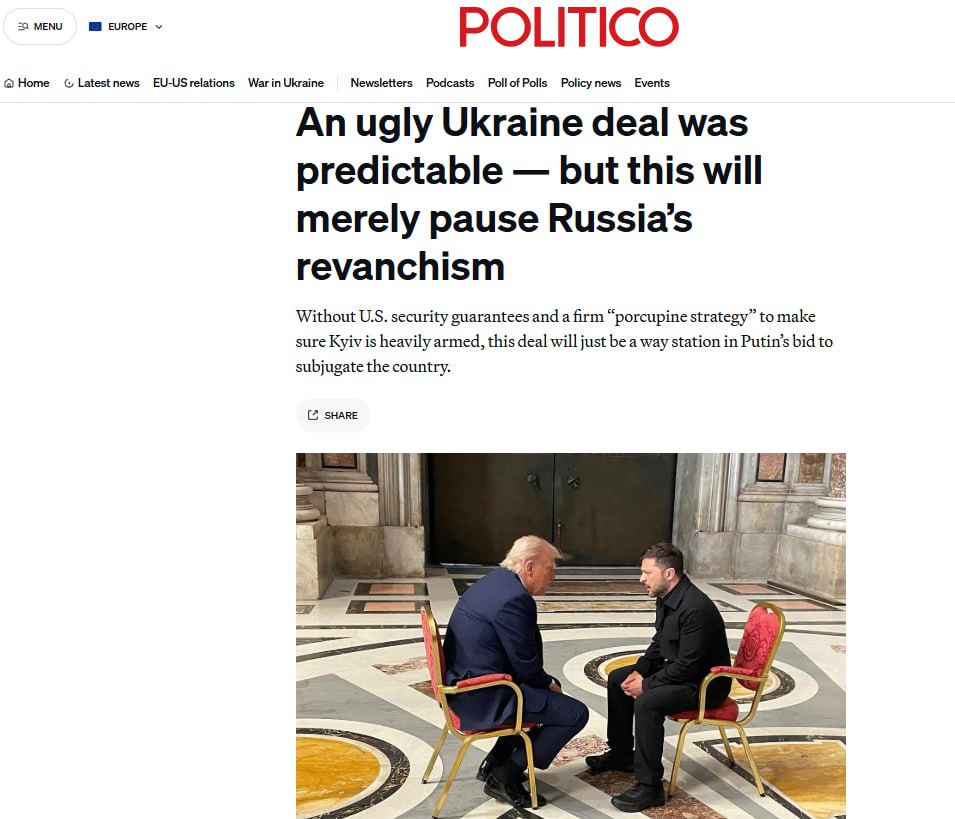 Мирное соглашение Трампа, скорее всего, станет концом президентства Зеленского, — Politico