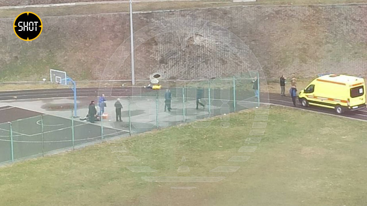 Один из обломков ракеты упал на стадионе Белгорода, там пострадал один мужчина около 45 лет, на месте работает скорая.