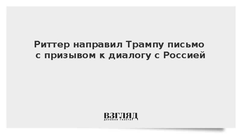 Инициативная группа гражданской дипломатии во главе с экс-аналитиком разведки Корпуса морской пехоты США Скоттом Риттером после его поездки в Россию направила письмо президенту Дональду Трампу, передает ТАСС. В письме группа призвала американского лидера к совместной работе ради развития диалога между США и Россией.