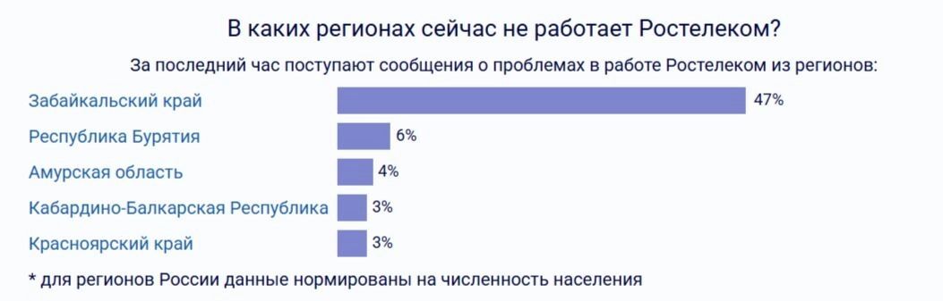 География проблем с интернетом оказалась значительно шире Омска. Согласно статистике Downdetector, наибольшее количество жалоб поступило из Ленинградской области (19% от общего числа), Ямало-Ненецкого автономного округа (16%), Санкт-Петербурга (15%), Псковской (10%) и Вологодской областей (9%).
