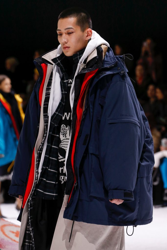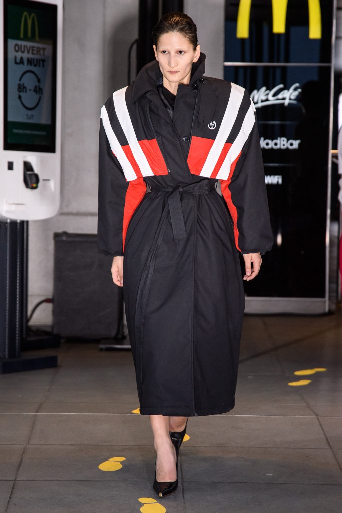 Но из всех троих особенно хочется отметить уровень постиронии Демны Гвасалии. Если проанализировать все творчество дизайнера, то можно с легкостью уловить тот факт, что он на протяжении многих лет черпал вдохновение в стиле людей, которым вообще все равно на моду. Отсюда и «батины» кроссовки (да, речь о нашумевшей модели Balenciaga Triple S), и куртки не по размеру, в которых мог выйти за хлебом любой среднестатистический житель окраин, и футболки с принтом, имитирующим логотип пивной или любой другой этикетки. Уверены, ты и без примеров запросто можешь представить любителей бесплатного мерча, которые выгуливают айтем с такой гордостью, что позавидуют владельцы всех люксовых брендов вместе взятых.