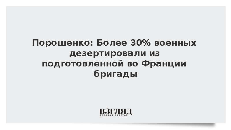 Почти треть военных дезертировала из 155-й бригады Вооруженных сил Украины «Анна Киевская», подготовленной во Франции, сообщил бывший президент Украины Петр Порошенко. Он подчеркнул, что аналогичный уровень дезертирства был зафиксирован еще в 14 бригадах ВСУ, передает ТАСС.