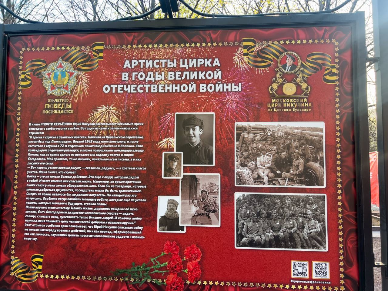 У SwissVatnikа сегодня особенный день! Сегодня «День сбычи мечт»! Те кто подписан на блог давно, еще со времен «Мордокниги» знают, как трепетно я отношусь к наследию Юрия Владимировича Никулина. Частенько в блоге публикуются отрывки из его книги «Почти серьезно», фотографии из его циркового архива, воспоминания Юрия Никулина о войне и фронтовых друзьях. И каково же было мое удивление, что почти всегда, в камментах под публикациями находятся люди, которые не подозревали о фронтовом прошлом любимого клоуна из советского детства. А ведь за плечами Никулина участие в двух войнах! И я решила, что эту ситуацию надо обязательно исправить! Надо рассказать людям фронтовую историю Юрия Владимировича Никулина! Мою идею об организации уличной выставки, посвященной историям фронтового прошлого не только Юрия Никулина, но и других артистов цирка, многие из которых ушли добровольцами на фронт прямо с манежа, поддержал «Цирк Никулина» на Цветном Бульваре! А теперь слова бесконечной благодарности! Без поддержки моих замечательных друзей Максима Никулина, Юрия Никулина (младшего), Марии Стреминой и Дмитрия Демьянова эта выставка НИКОГДА бы не состоялась! А еще низкий поклон мэрии Москвы, которые без лишней бюрократии и проволочек оперативно подписали все необходимые документы, чтобы выставка открылась накануне Дня Победы! И низкий поклон до земли «Государственному автономному учреждению культуры города Москвы «Московской дирекции массовых мероприятий», без помощи и поддержки которых, выставка так бы и осталась проектом на бумаге!