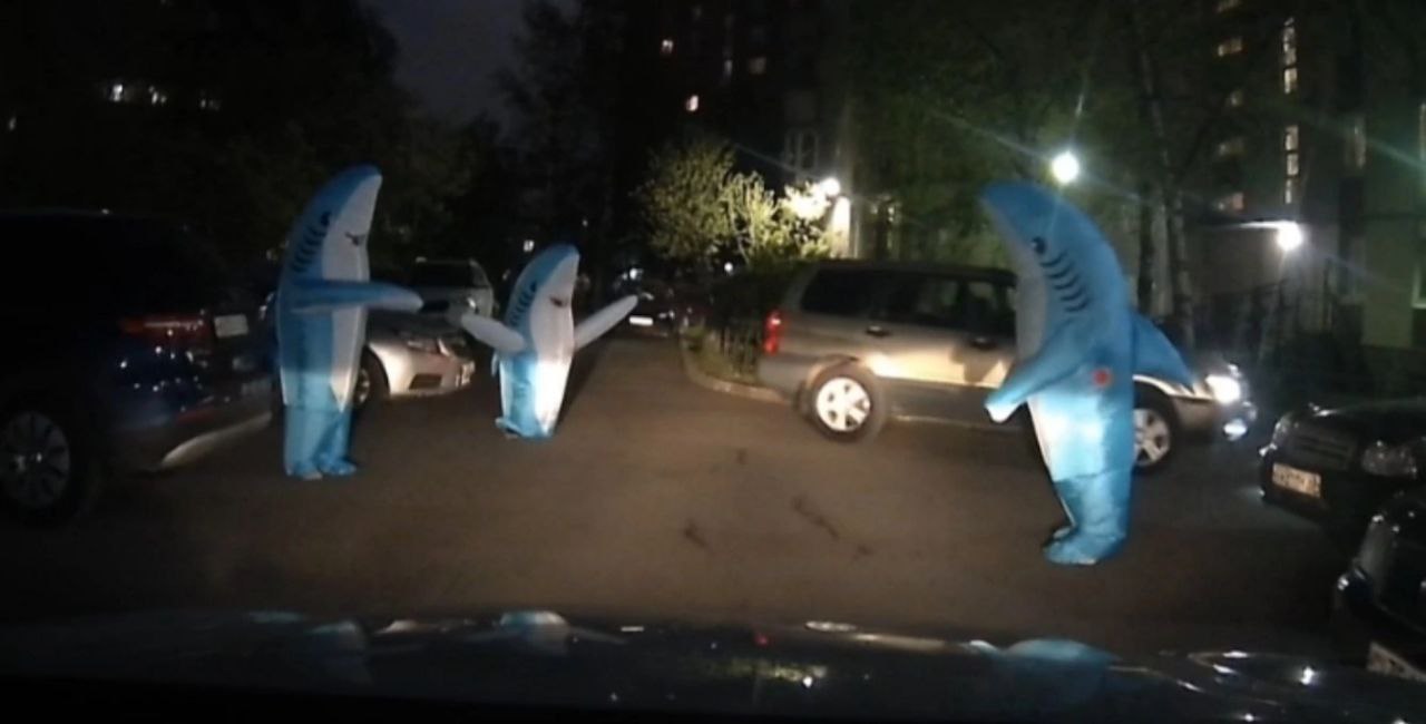 Вот такой необычный перформанс заметили в одном из дворов Санкт-Петербурга. Кто они, чего хотели, что ими движет – история умалчивает. Одно радует: «хищники» оказались безобидными.
