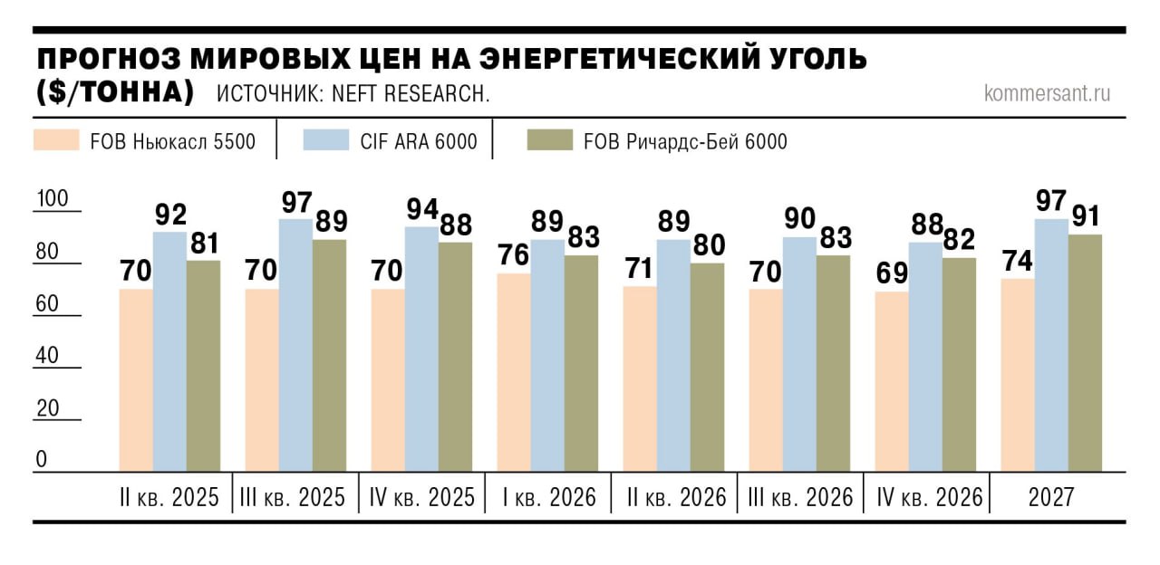 Из-за снижения спроса и рисков замедления мировой экономики, которая находится под давлением торговых пошлин, аналитики NEFT Research пересмотрели прогноз относительно перспектив рынка энергетического угля на 2025–2026 годы, снизив ожидаемый уровень цен на 13–15% по сравнению с предыдущим расчетом.