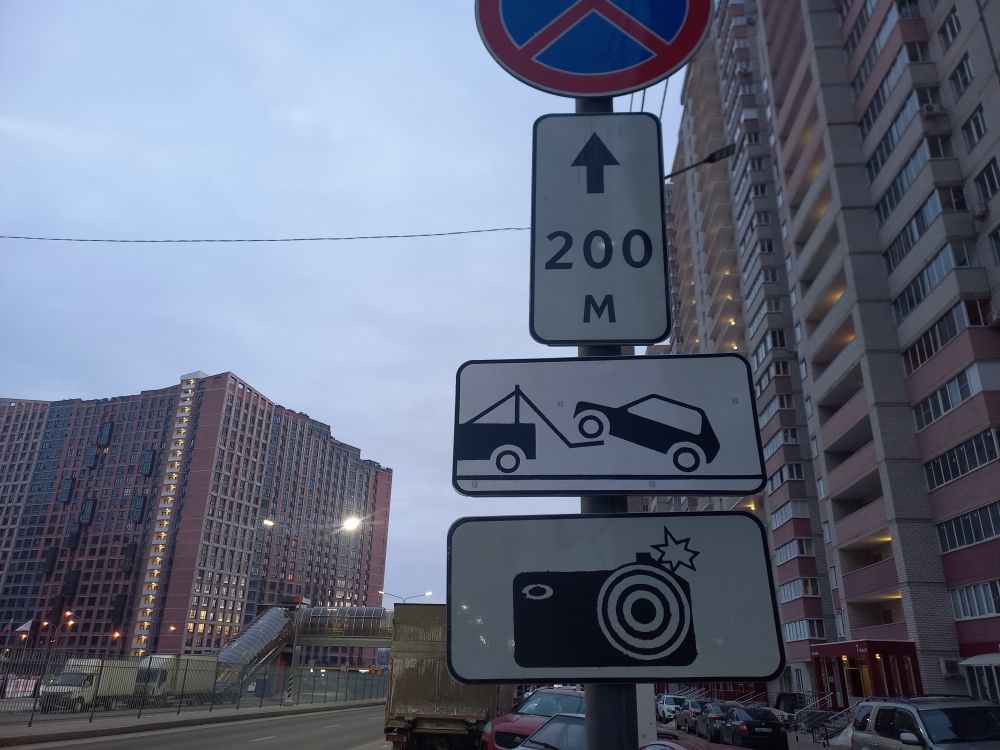 «Выставленные знаки о работе эвакуаторов и фотофиксации, не мешают парковаться на проезжей части улицы Крынина», — комментирует очевидец.