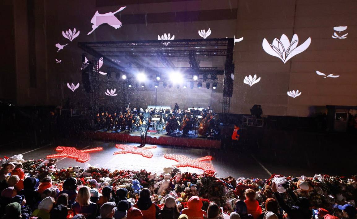 Накануне вечером у "Крокус Сити Холла" прошел благотворительный концерт в память о жертвах трагедии.