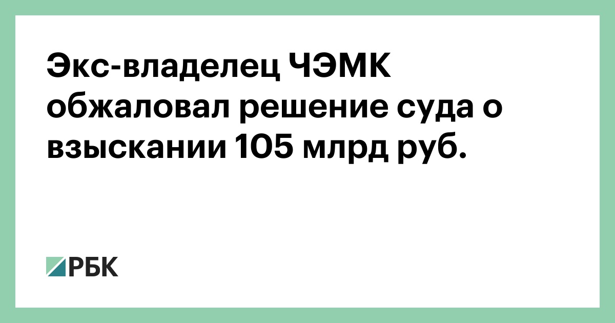 Экс-владелец «Челябинского электрометаллургического комбината» (ЧЭМК) Юрий Антипов подал апелляцию на решение Арбитражного суда Челябинской области о взыскании 105 млрд руб., следует из картотеки арбитражных дел. На это обратил внимание «Коммерсантъ».
