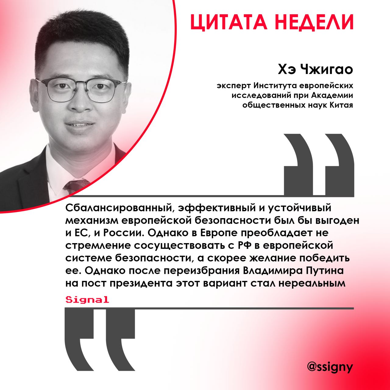 Эксперт Института европейских исследований при Академии общественных наук Китая Хэ Чжигао заявил, что переизбрание президента РФ Владимира Путина означает для Евросоюза, что вариант завершения конфронтации с Россией путем победы над ней становится нереальным. Политолог напоминает, что, с точки зрения безопасности, Россия - сосед, от которого ЕС "не может отстраниться". По его мнению, вне зависимости от того, победит ли Дональд Трамп на предстоящих президентских выборах в США, помощь Европы Украине "будет иметь новую судьбу", поскольку Евросоюзу нужно решать вопросы собственного развития и "больше думать о том, как сохранить стратегическую автономию".