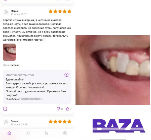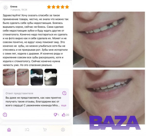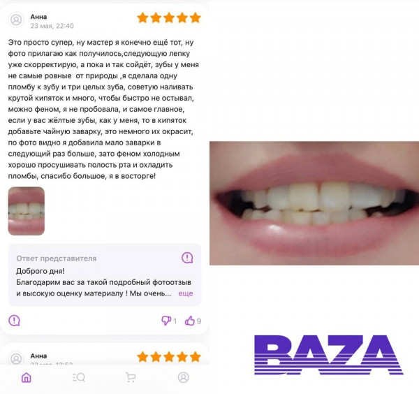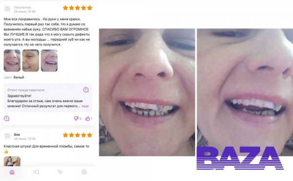 В отзывах покупатели признаются, что домашние пломбы помогают им хотя бы на какое-то время. Там же пользователи делятся советами о том, как сделать зубы более естественными по цвету: в исходную пасту, например, можно добавлять чайную заварку.Ещё, оказывается, этот набор "сделай сам" можно сушить феном.