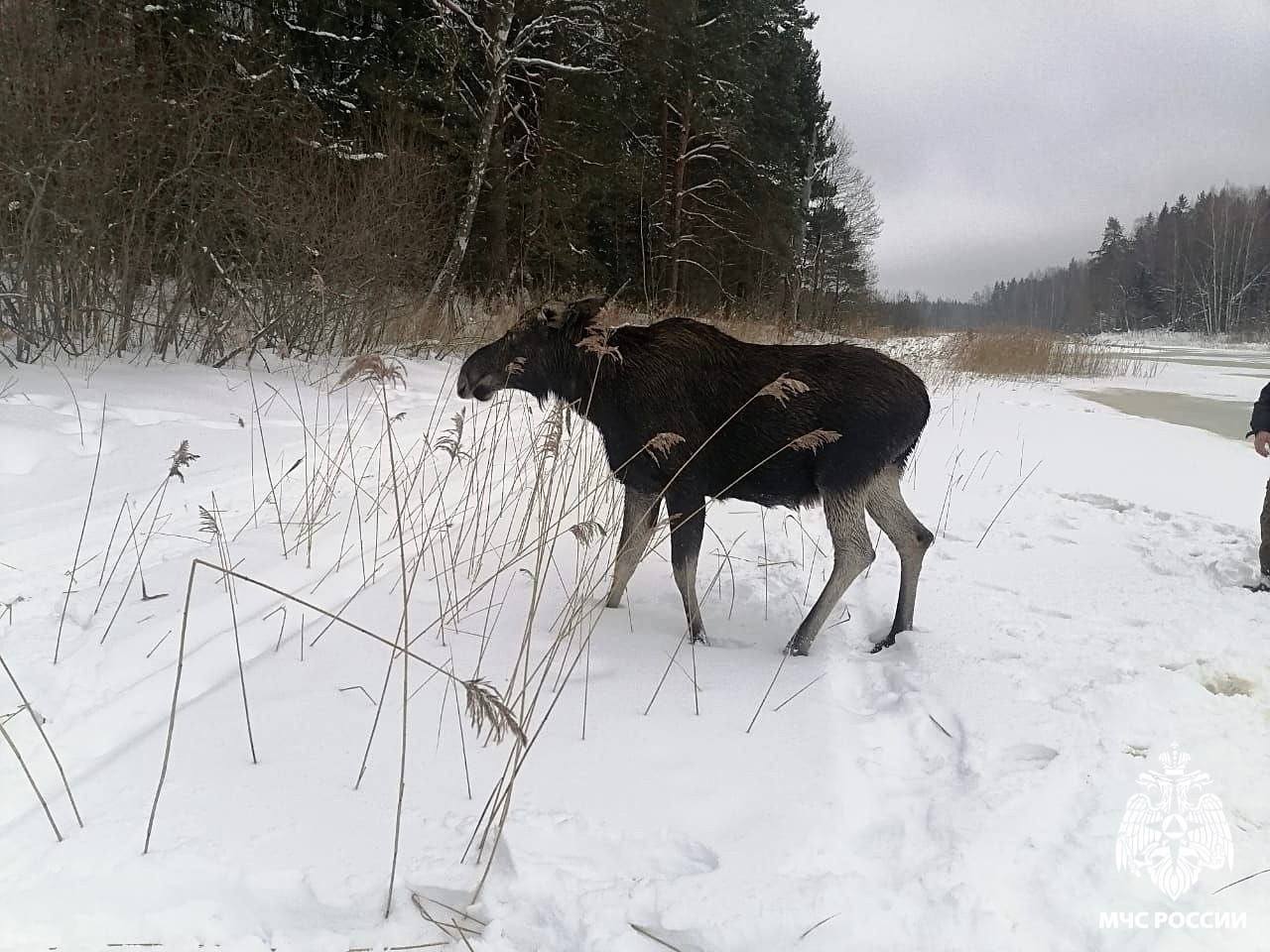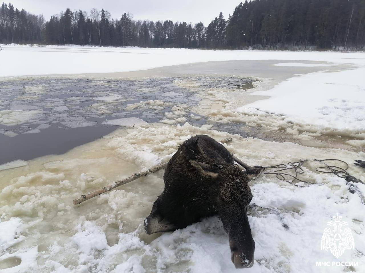 Вместе с ним был маленький лосёнок, он не выжил, рассказали в МЧС.