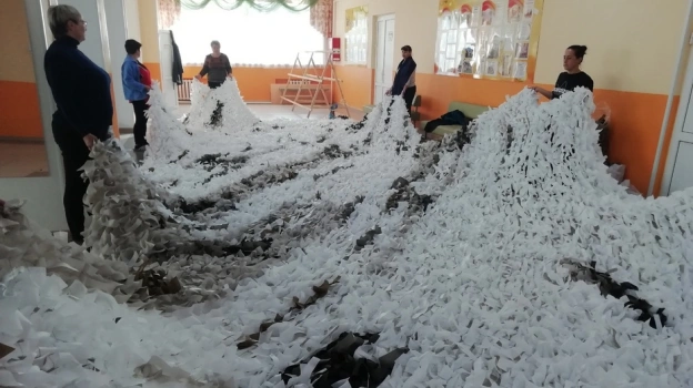 – Наша школа тоже занималась плетением сетей. Для удобства изготовили специальные станки. Мы их позаимствовали и устроили мастерскую в фойе центра культуры. На протяжении десяти дней сотрудники центра, участники клуба «Надежда» для активных жителей поселения старше 50 лет и просто неравнодушные односельчане в свободное время вплетали ленты в основу. Каждому хотелось внести свою лепту, – рассказала местная жительница Валентина Крутских.