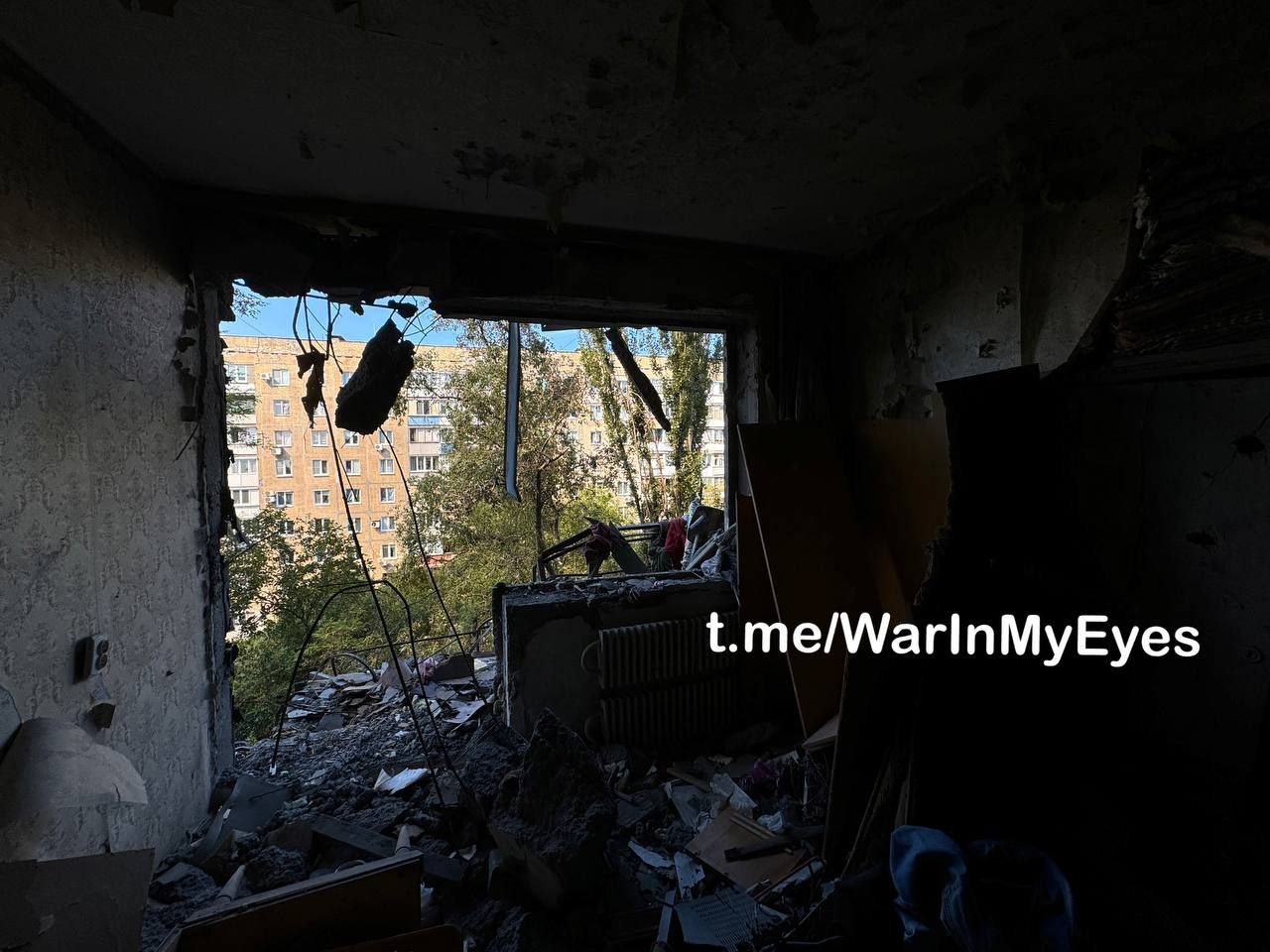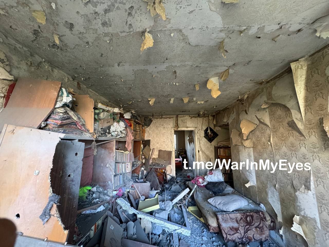 Последствия обстрела Петровского района Донецка, Добровольского 1, прямое попадание