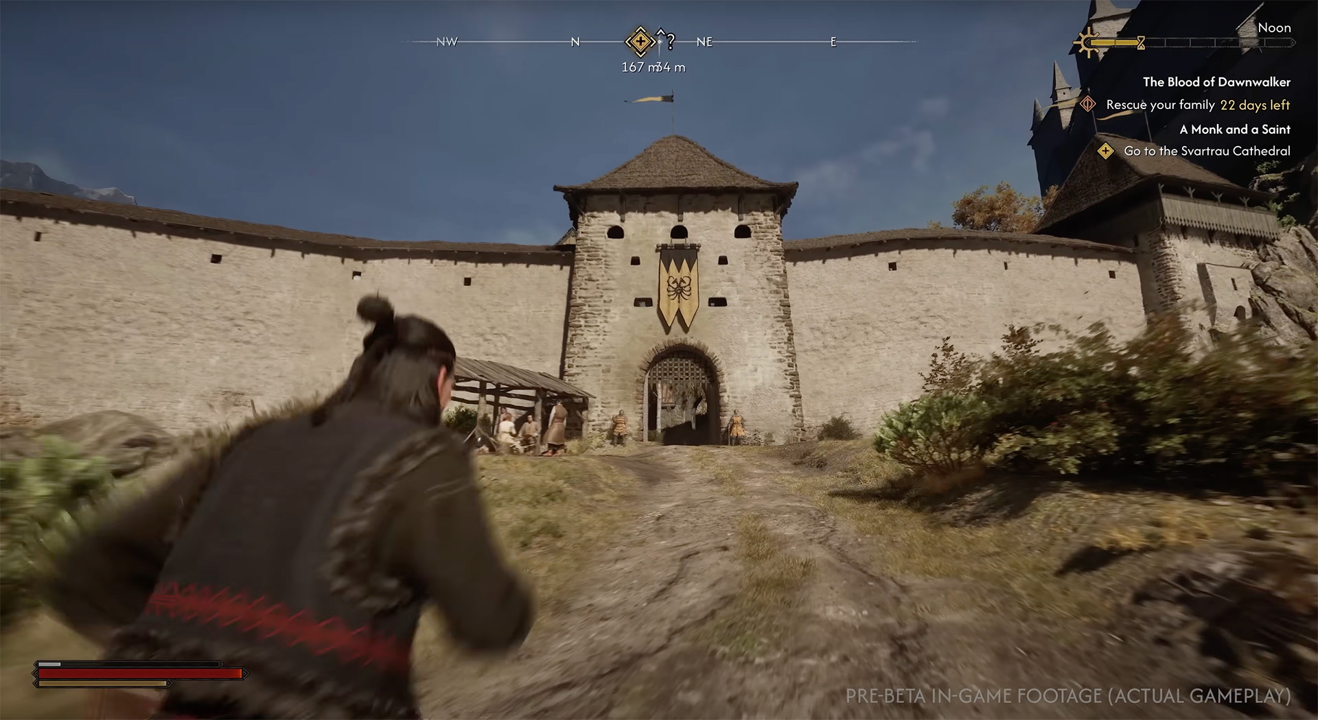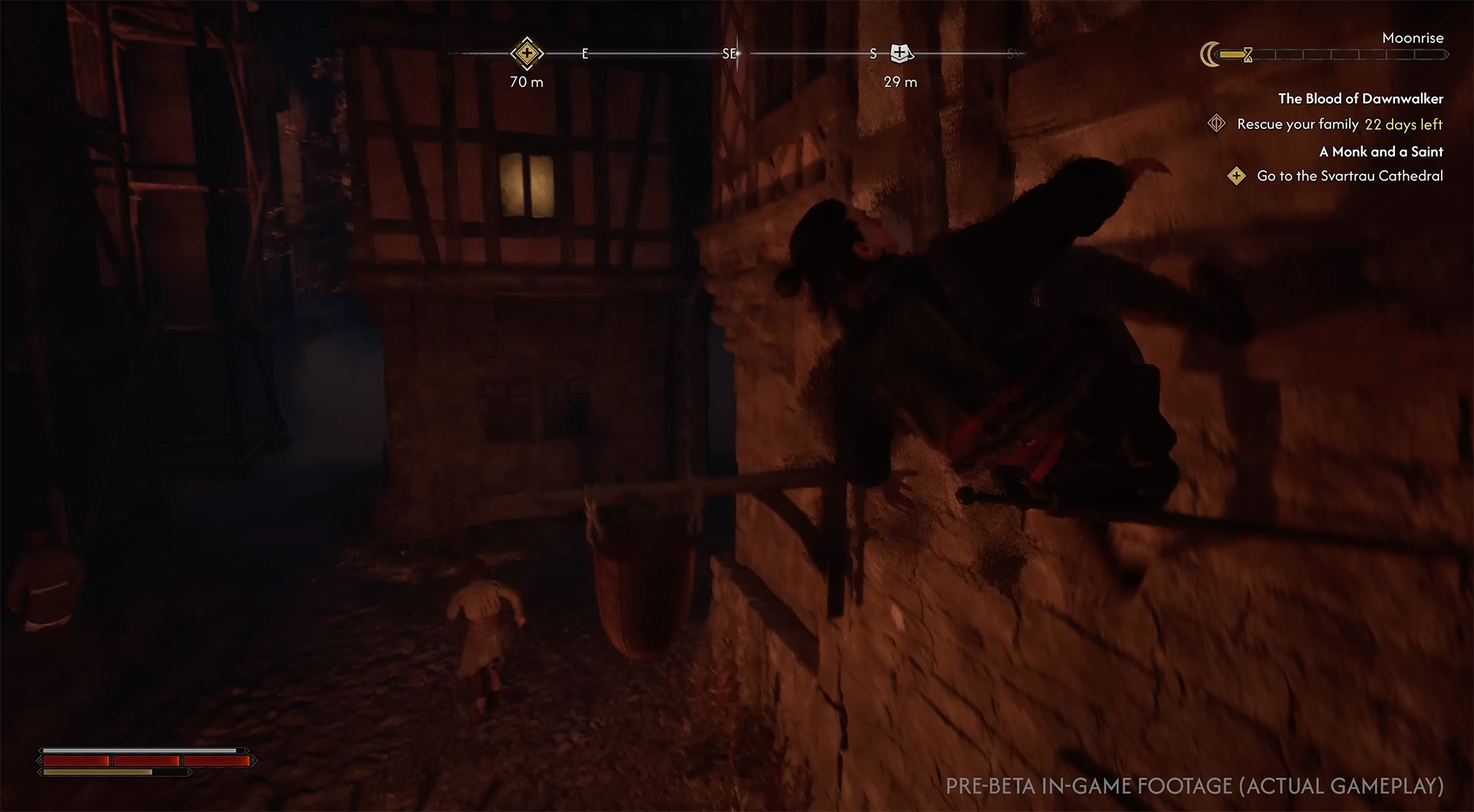 В представленном ролике мы видим, как днем Коэн свободно путешествует по дорогам, входит в город и даже посещает собор без каких-либо проблем. Это указывает на то, что днем основное взаимодействие с миром строится вокруг социальных механик и проникновения в локации "с парадного входа".