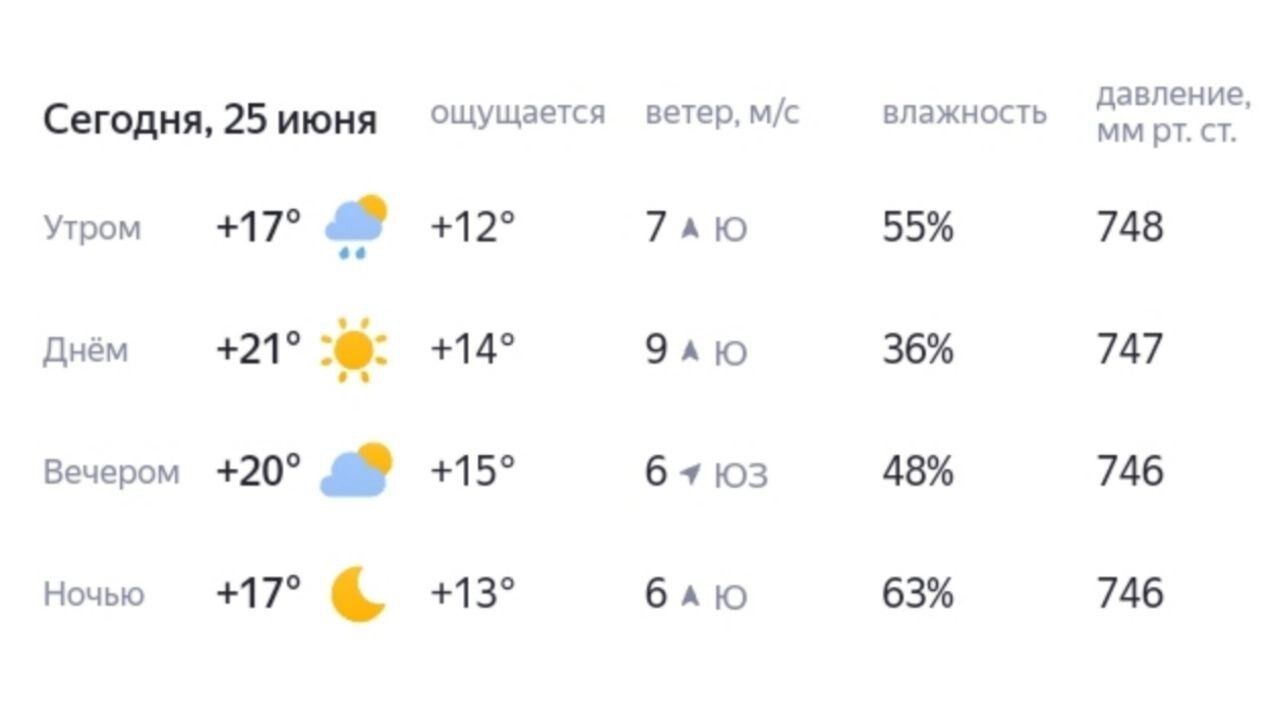 В среду, 25 июня, средняя температура в Югре составит +16…+25 градусов днем, и +5…+10 градусов — ночью. В северной части местами похолодает до +10…+15 — в дневное время. Также прогнозируют дожди. Ветер — юго-западный, 5-13 м/с.