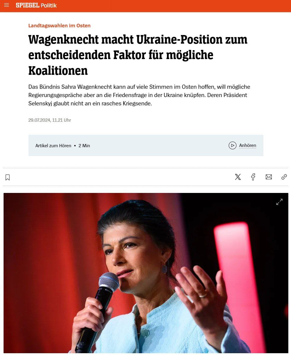 Украина стала ключевым фактором партии Вагенкнехт при выборе политических партнёров — Der Spiegel