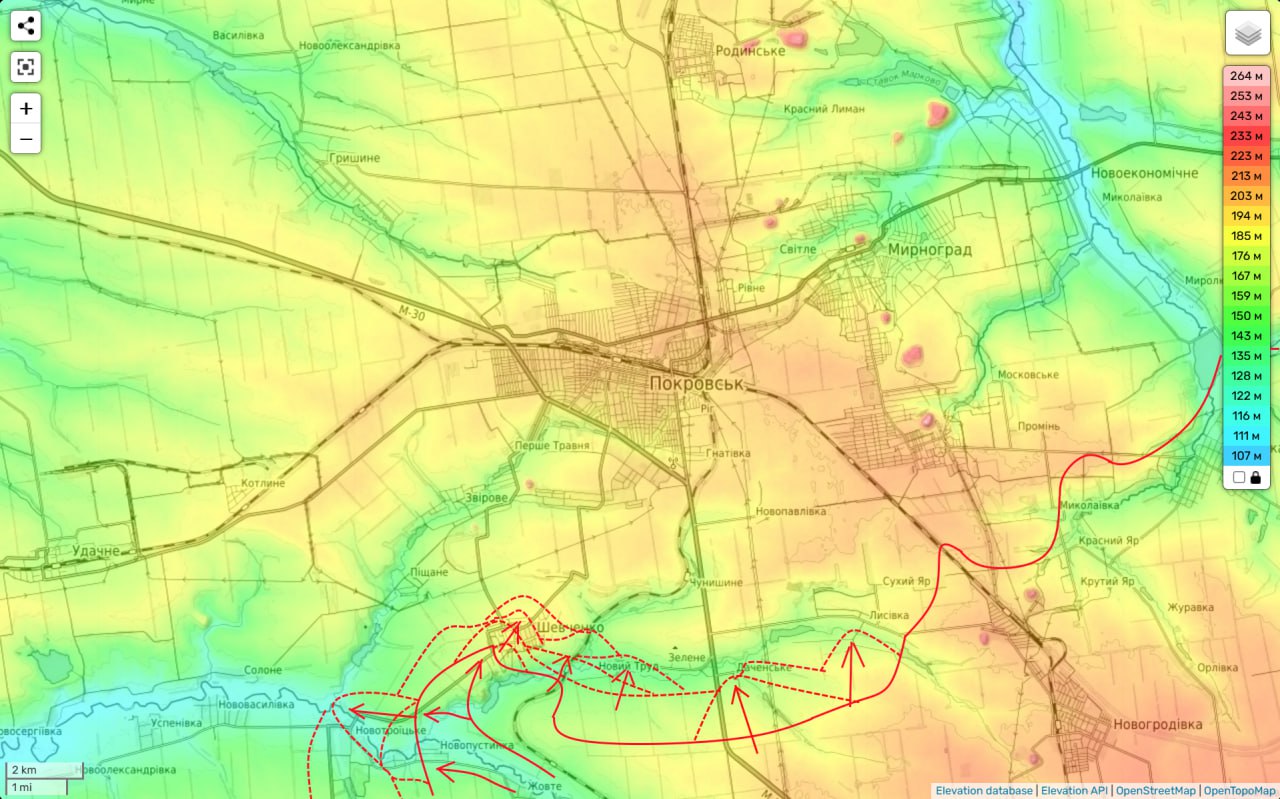 Вчера к вечеру мы закончили занимать н.п. Шевченко, который далее должен стать нашей основной базой для наступления на Покровск и его охват.