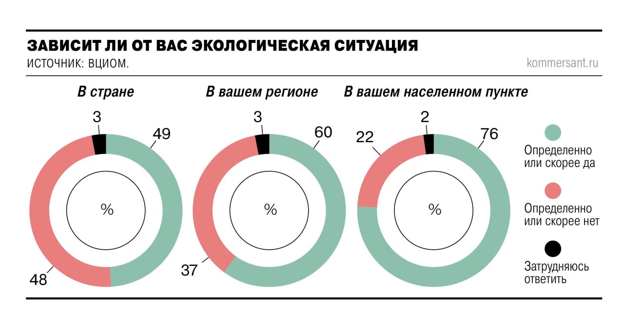Авторы исследования, в частности, интересовались, откуда у молодежи в принципе возникает интерес к экологии. 65% говорили о проблеме вывоза, складирования и утилизации мусора, 64% — о загрязнении лесов, водоемов и прибрежных территорий, 60% ссылались на заботу о собственном здоровье.