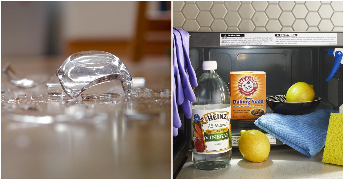 Чтобы убрать осколки с пола, можно начать с подметания, а затем пропылесосить. После следует взять кусок ржаного хлеба и пройтись им аккуратно по полу, поскольку он словно магнит, притянет и соберёт мельчайшие осколки. Затем промойте пол с моющим средством и вытрите его насухо.
