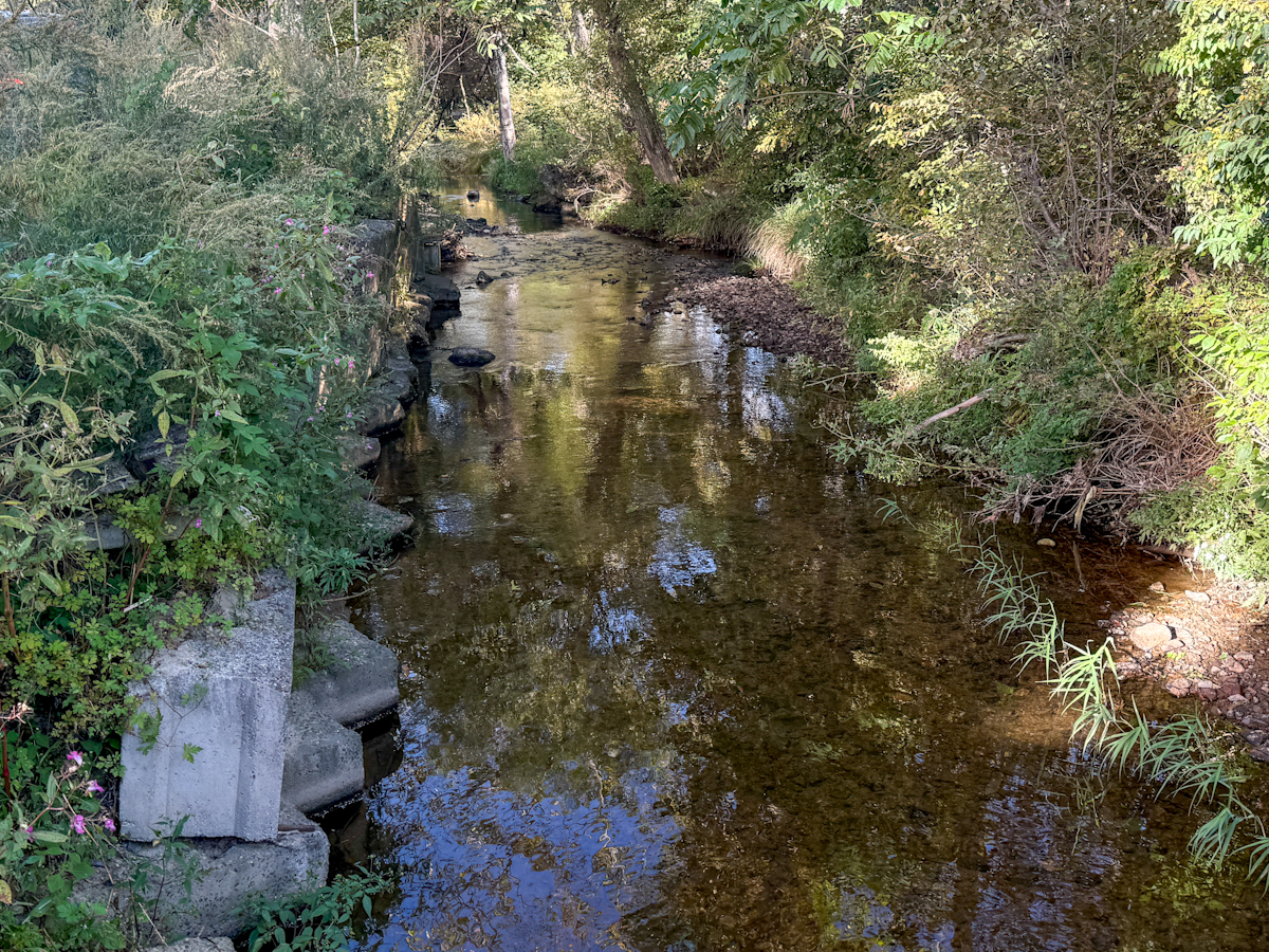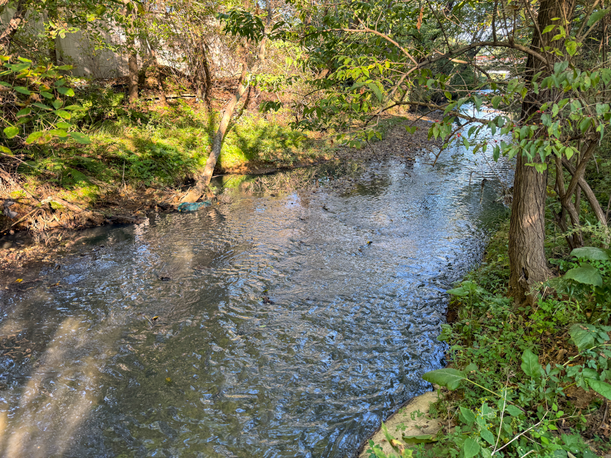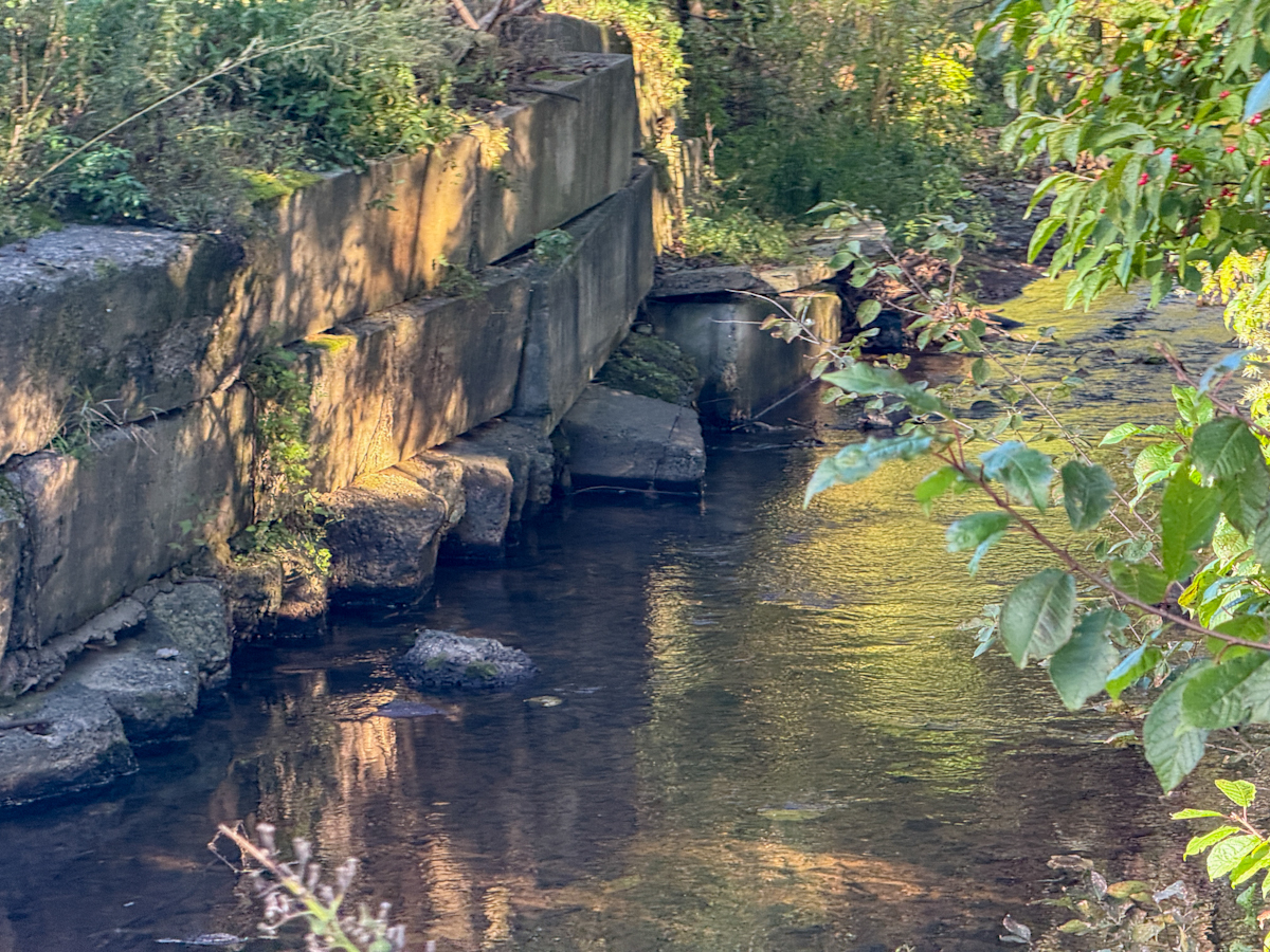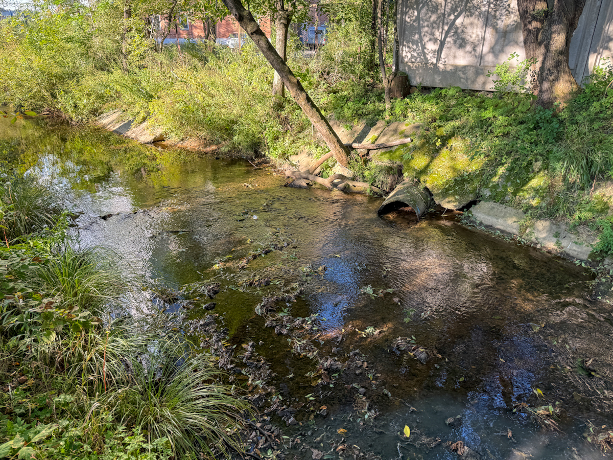Как рассказывают жители ближайших к речке домов, труба, из которой в речку попадают стоки. выходит из-под здания канализационной насосной станции (КНС) № 3 Приморского водоканала. Если посмотреть в место слива, можно увидеть, как отличается цвет воды реки от того, что вытекает из трубы. Речная вода более чистая и прозрачная, а канализационная – мутная и серая. По берегам валяется что-то, напоминающее салфетки и туалетную бумагу. В округе стоит легкий запах канализации.